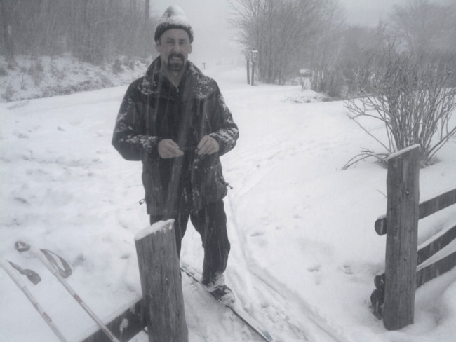 Gdy wracaliśmy do samochodu, przyjechał kolega Tadeusz z nartami i chęcią poruszania się trochę po śniegu. Krysia już „nabiegana” postanowiła wracać do domu, a ja skorzystałem z okazji i pobiegłem jeszcze raz ten sam odcinek z Tedim. Pogoda niestety już nie była tak ładna jak wcześniej i padało prawie cały czas. W pewnym momencie padało już tak mocno, że widoczność była ograniczona tylko do kilku metrów, a wracając nie widzieliśmy prawie naszych śladów - były już zasypane świeżym śniegiem.