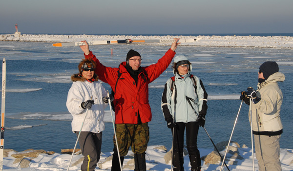 Dalej już biec się nie dało więc ruszyliśmy w kierunku portu. Posuwaliśmy się trochę szybciej z uwagi na nasz świeży jeszcze ślad, którego nie zdążyli jeszcze w całości rozdeptać spacerowicze.Zatrzymaliśmy się ponownie „na małe co nieco” jak powiadał Kubuś Puchatek i nastąpiła wzajemna wymiana wiktuałów. Pogadaliśmy trochę o tych, których nam brakowało w towarzystwie (tak, tak – Was wszystkich!)